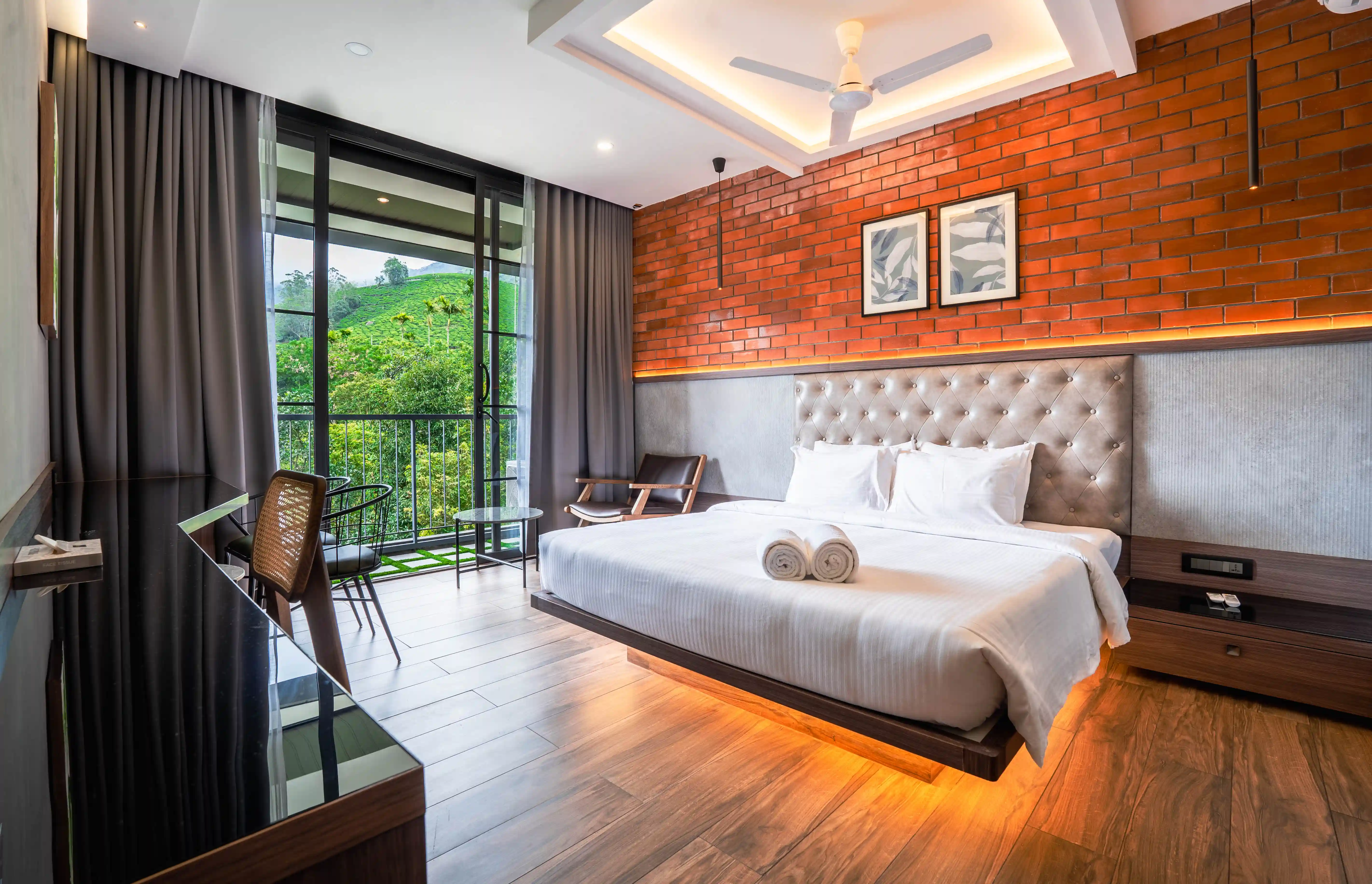 Experience refined luxury in our Premium Suite with Garden View, where elegance meets tranquility. Overlooking lush green tea gardens and manicured landscapes, this spacious suite offers the perfect escape into nature’s serenity. Enjoy plush interiors, modern amenities, and a private balcony that opens to refreshing mountain breezes and scenic views.